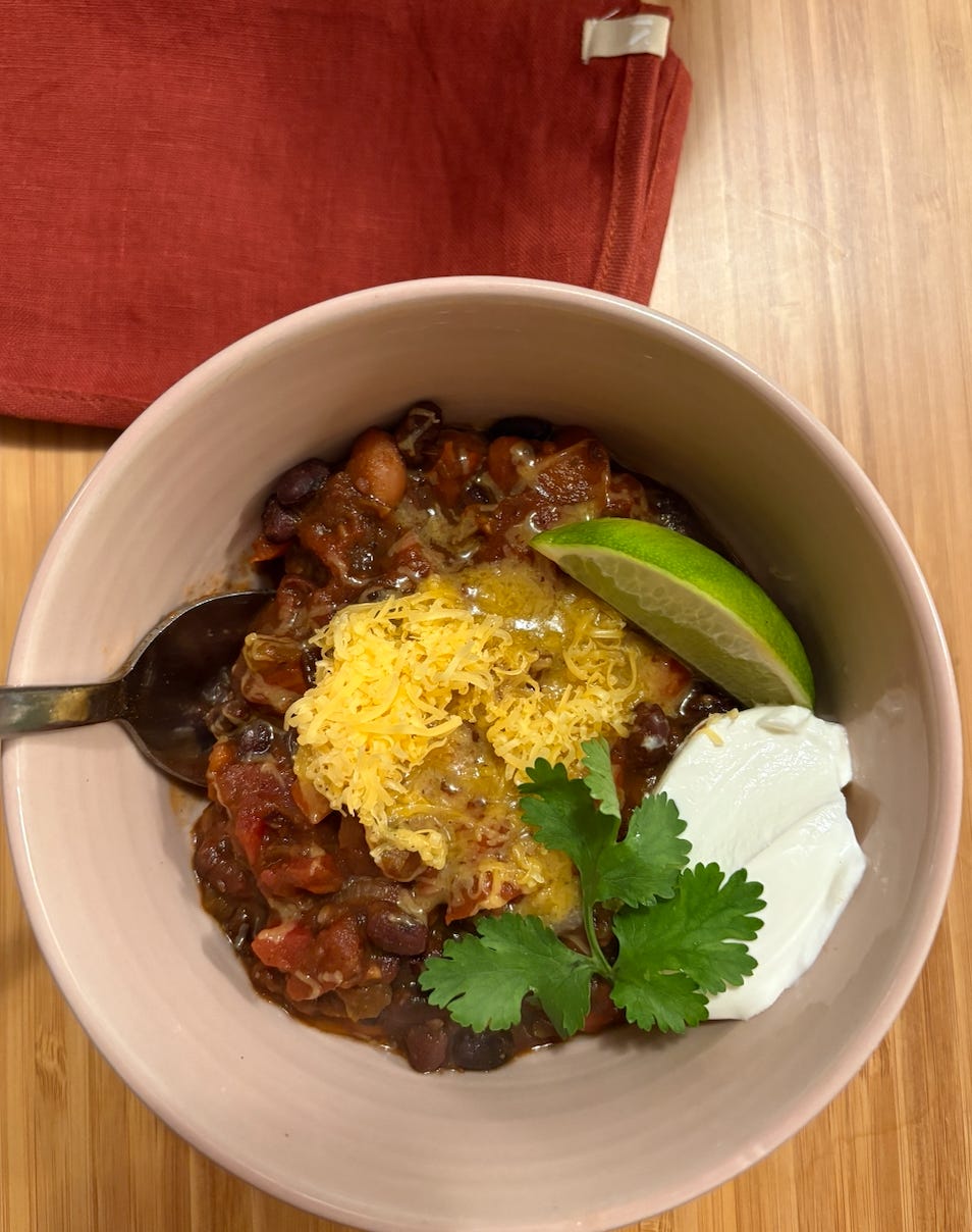 Soup season continues and Jared and I made excellent vegetarian chili with beans and all the fixings. We followed this recipe and added some chipotle in adobo for extra smokiness. The leftovers were excellent and it came together quickly.