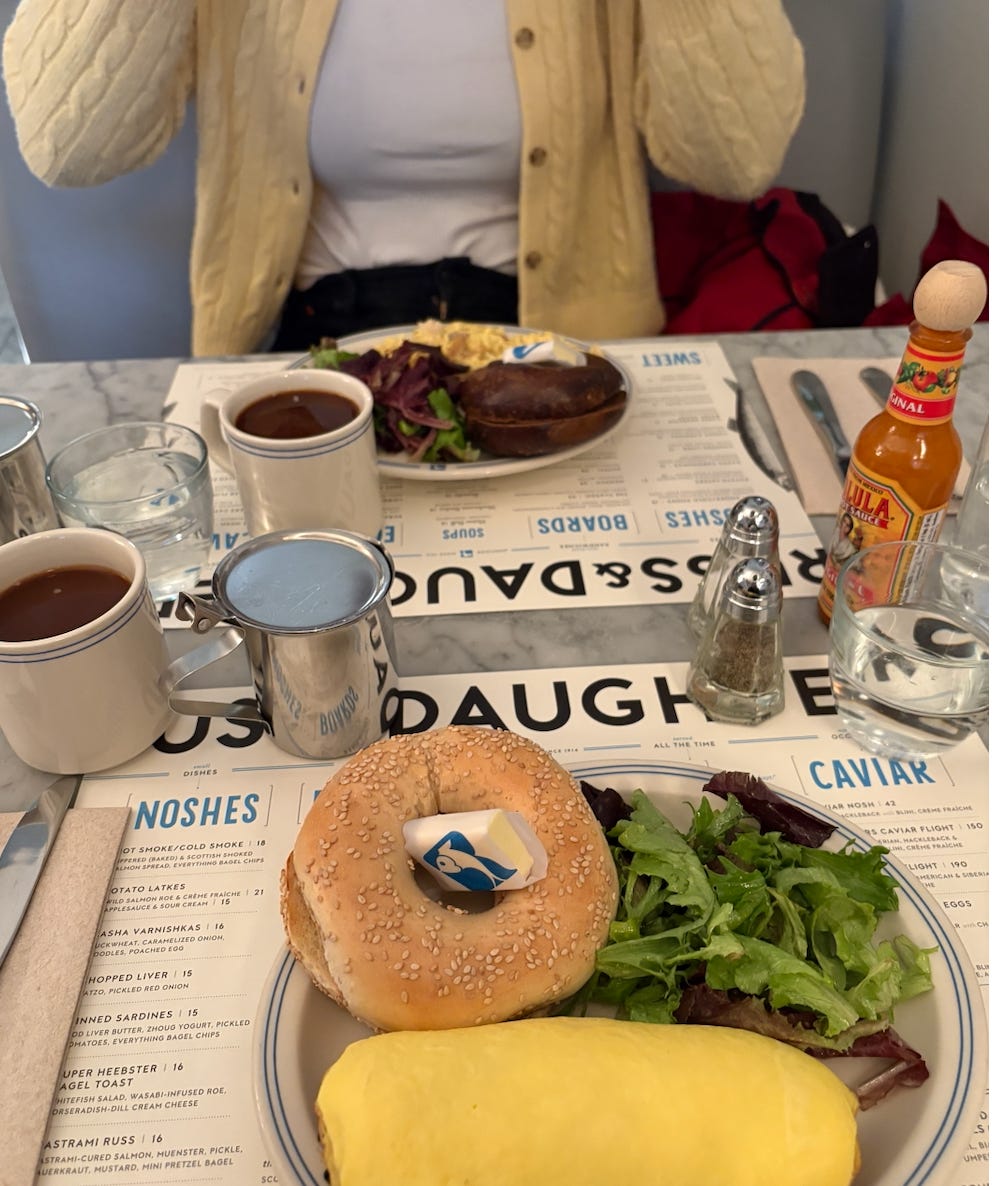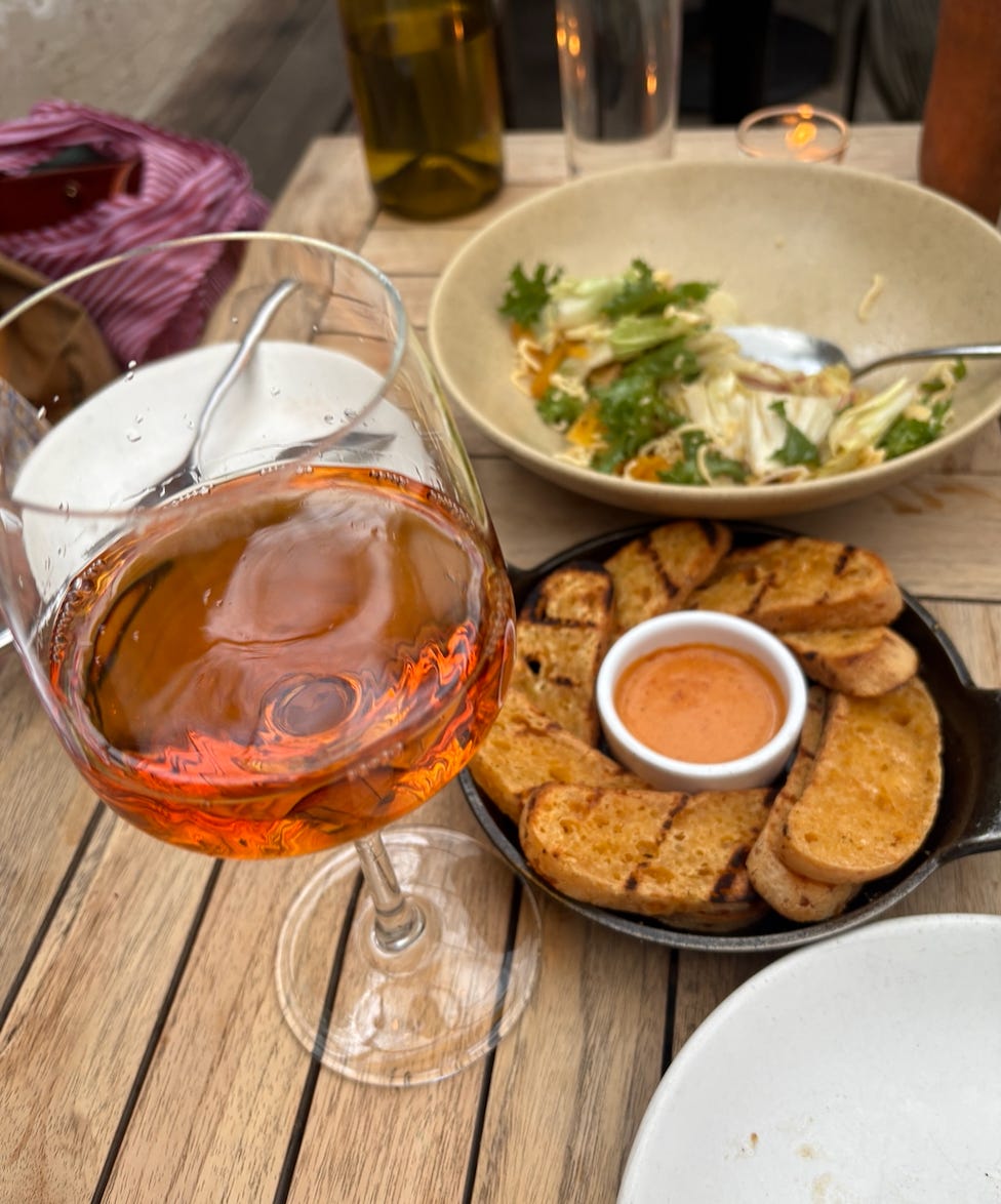 at Russ and Daughters Cafe. The service was excellent and they open at 8:30, so you can get breakfast not just brunch. We each got eggs and swapped the toast for a bagel because it’s Russ and Daughters after all. Abena is absolutely wonderful, don’t miss her newsletter .Alyssa, Erica and I caught up over dinner at Colonia Verde, which has a beautiful backyard. I got mushroom tacos and a beautiful orange wine and we had a lovely time.