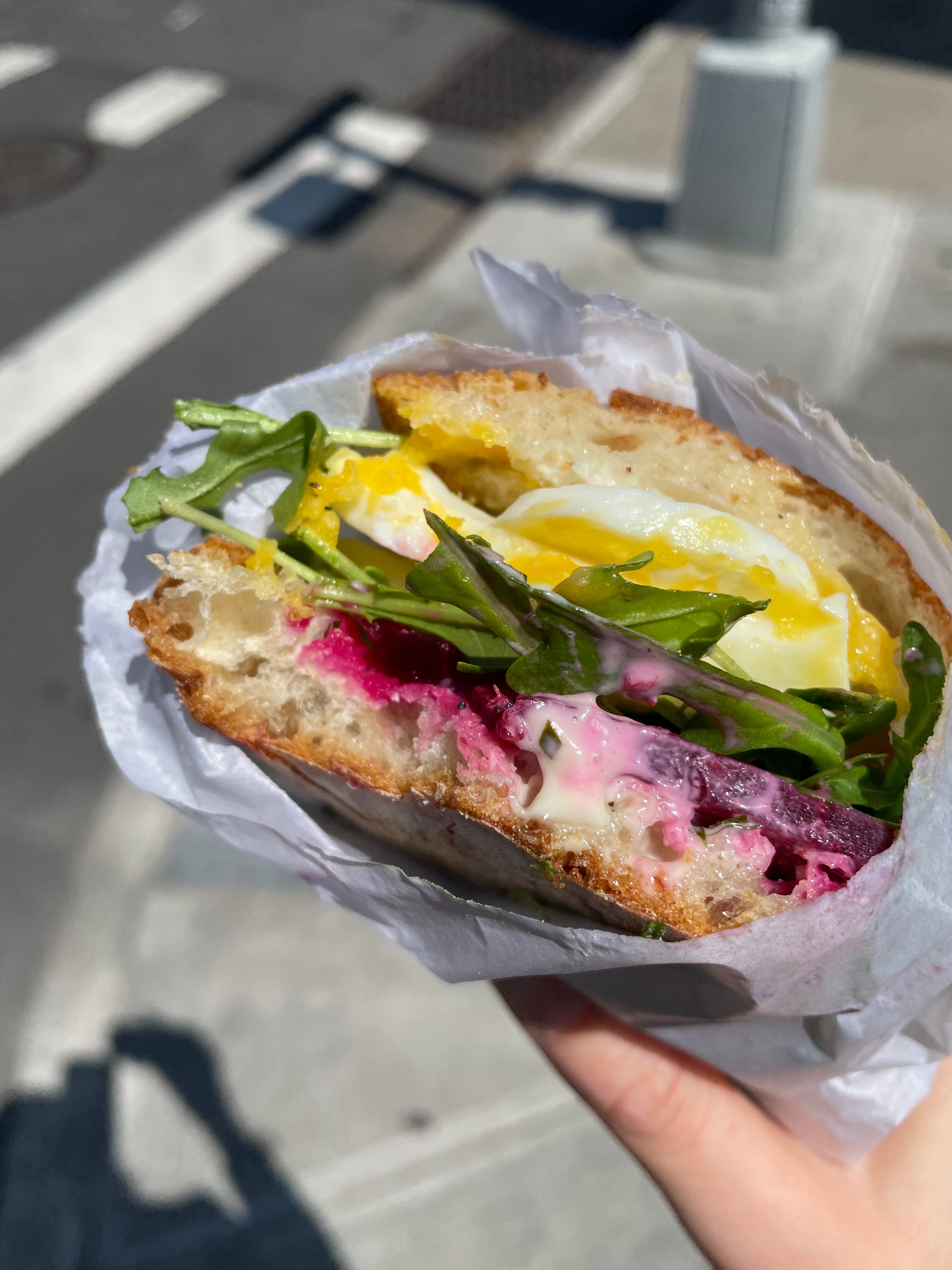 I’m figuring out the lunch options around my office and Depanneur is a good one. I got the pickled beet sandwich with a medium boiled egg and it was really good. It’s also the type of vegetarian sandwich that feels good to purchase out because it would be time consuming to make at home (and working with beets always leads to stains for me).