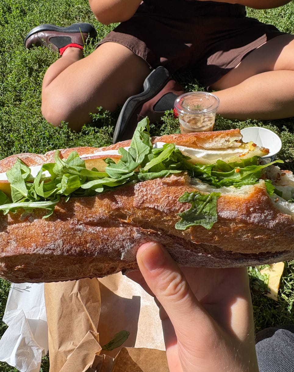 Frida and I met up at Bittersweet and caught up in Fort Greene Park. I got an Arnold Palmer and a brie and apple sandwich, which came with grainy mustard and butter. Hanging in the park with a friend is the best.