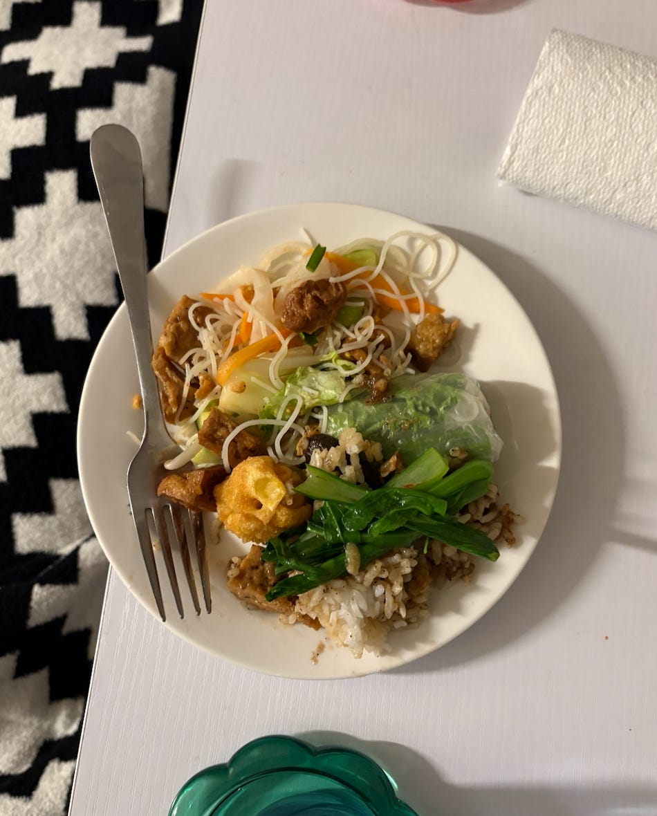 Julia and I got to see Julianne’s gorgeous new apartment in Long Island City. We ordered from Cyclo, a great Vietnamese spot nearby. Their vegetarian pho is excellent, as were the summer rolls, vermicelli salad, and clay pot dish with mushrooms. I’ve been to the restaurant in person too and it’s lovely.